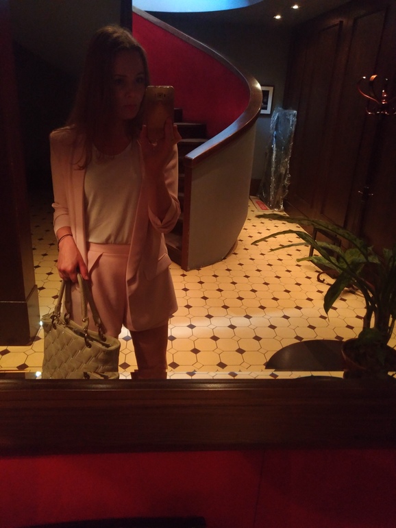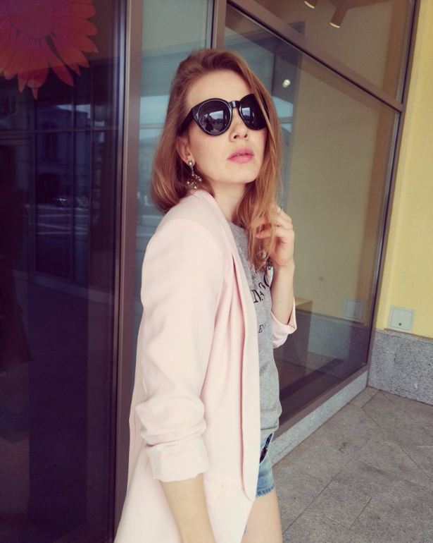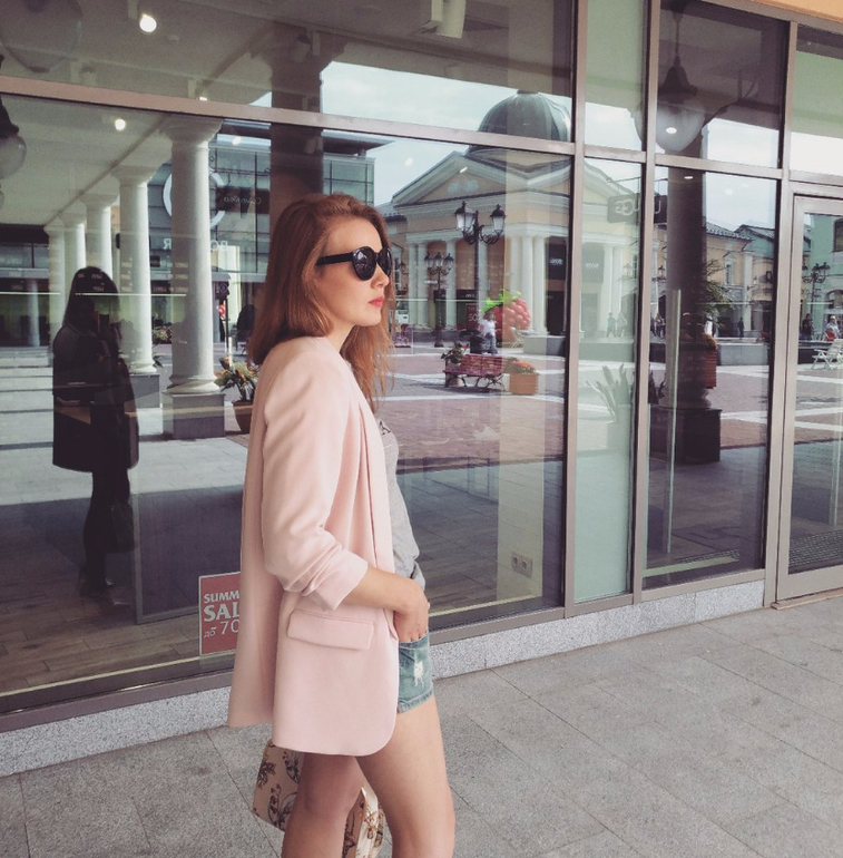 Категория выбрана смело, но не удачно... майка с шортами спорят с обувью, сумкой и пиджаком.