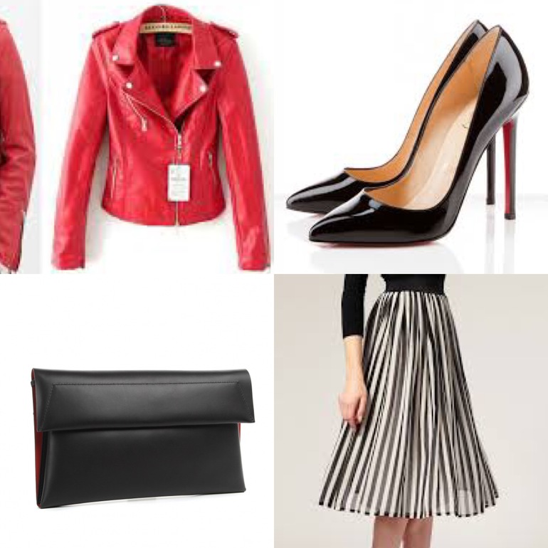 Обувь и сумка мне не нравятся, слишком старомодны( для меня). А вот юбка и косуха очень! Не вижу в красной кожанке ничего кричащего, Вы же не с мини в обтяг и декольте ее показываете, а со спокойной серой длинной юбкой. Вообще, крутая и универсальная вещь))