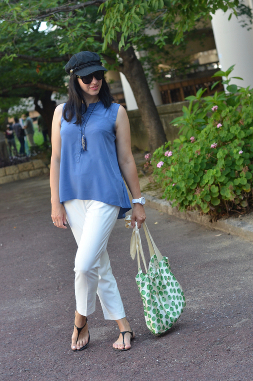 Японки летом часто носят тряпичные сумки, и я о своей вспомнила, висит уже несколько лет без дела, решила приобщить. Оказалось очень удобной.