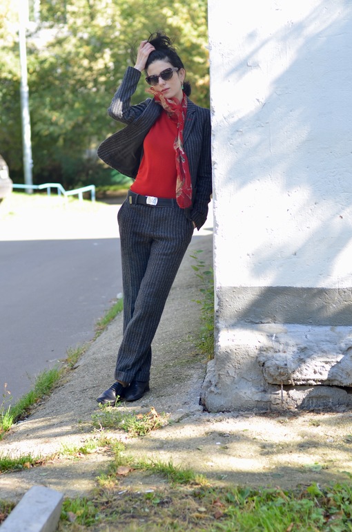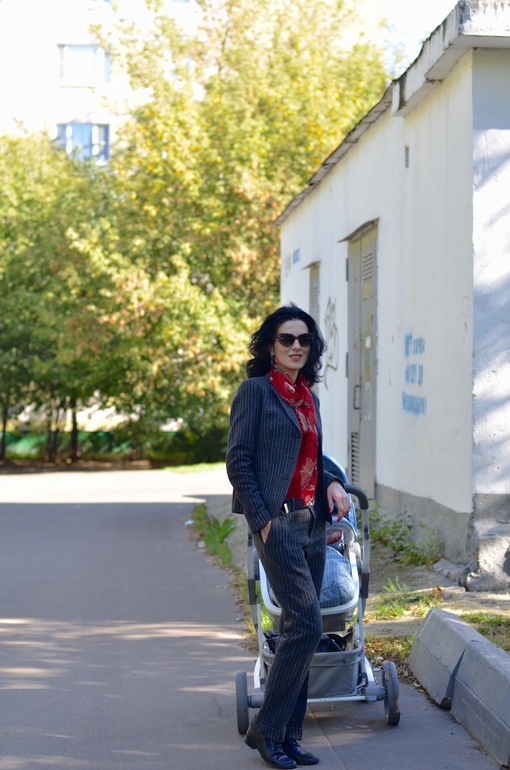 На помощь пришёл шерстяной костюм из юникло. Покупала, когда была на 5 мес. беременности. Брала впрок) Думала потолстею, поэтому взяла брюки размера s. В итоге они мне велики. Теперь надо купить ремень. А пока беру взаймы у сына)))