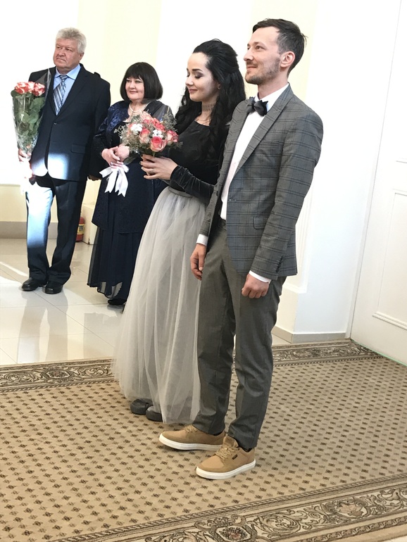 Платье безумно красивое! Хороший образ получился. Невеста с женихом очень милые и платье с костюмом очень интересные! Совет да любовь им!