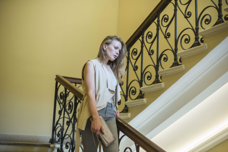 Покажу сразу второй образ, где для этих джинс более длинный верх