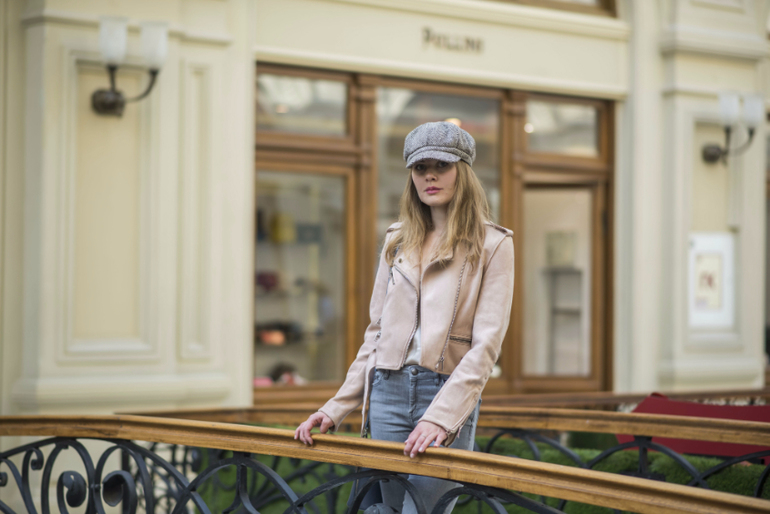 Фуражка, высокий каблук и косуха на мой взгляд не особо дружат. Только хлыста не хватает бгг. Надо что-то убрать. Было бы модно, если б вместо косухи-подстрелыша был свитер оверсайз, и ботфорты в довершение образа смотрелись бы супер.Вот с такими образами ваше кепи было бы более уместно: