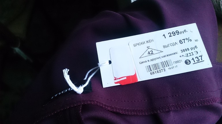 Мотиви, цвет - восхитительный марсала. Сколько ни пыталась, ни одно фото не передало. Чуть великоваты, вернее, попа у меня плосковата, брюки ни при чем(( Сначала схватила 44-й, буду возвращать на Ленинский, 101, если кому-то надо)))