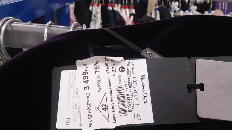 В винном угаре был также замечен рррроскооошный темно-лиловый пиджак МД на Ленинском, 101, если что))), правда, с небольшим браком на внутренней стороне рукава. Вынуждена признать, его я бы тоже взяла и носила бы с белой рубашкой и джинсами в магазин за картошкой, но моего размера не было. Он был единственный и висел не на месте - в ряду с 42-м российским, так что висеть ему там долго)) Фото тоже неважное - цвет (и качество) великолепно. На официальном сайте нашла только темно-синий, поэтому фото только моё((