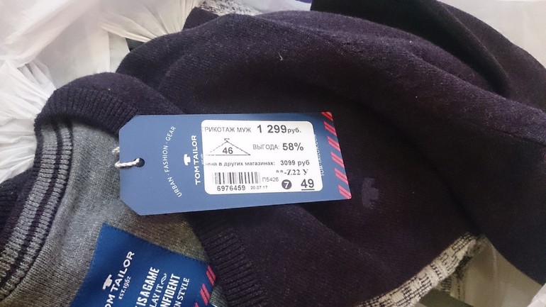 Ну, это, если с лупой. И они на внутренней стороне рукава. И "до кучи" был куплен сиреневый джемпер, который оказался мужским((( пришлось сдать