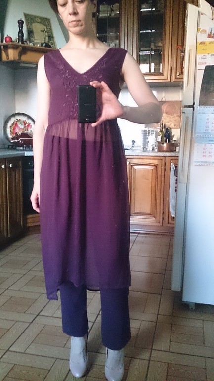 Не к брюкам, вообще-то, но получилось на винной волне была куплена туника (платье?) Примерить пока больше не с чем, поэтому ловите тотал))