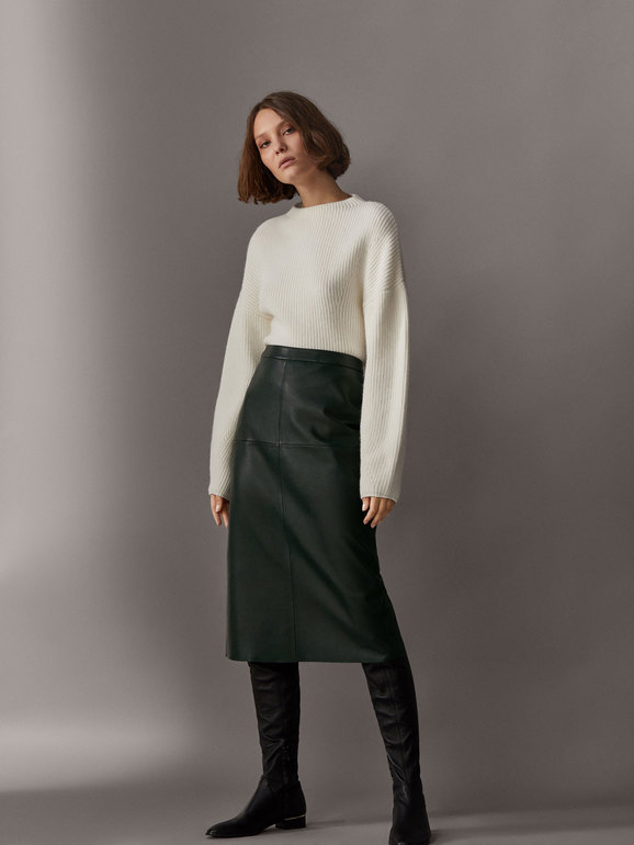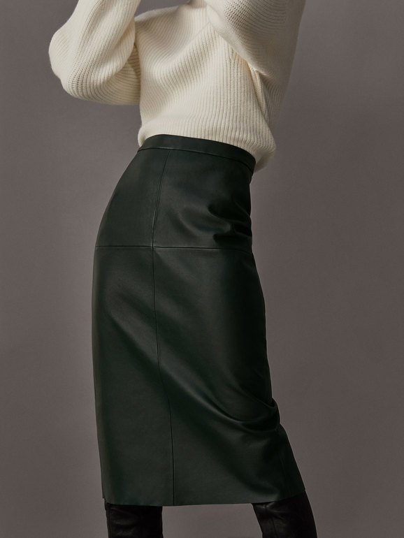 мне зеленый цвет у юбки импонирует,но важно как кожаная по фигуре сядет. Вообще такие вещи до распродаж доживают.