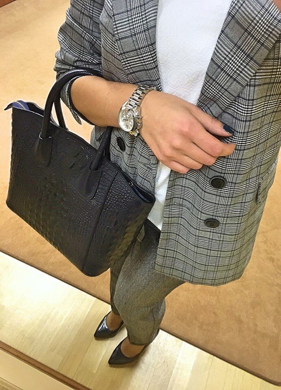 Сумку, наверное, лучше мою Кочинельку черную сюда, но к верхней одежде больше подходил крокодил, поэтому вот ) На работе я все равно без сумки хожу ))