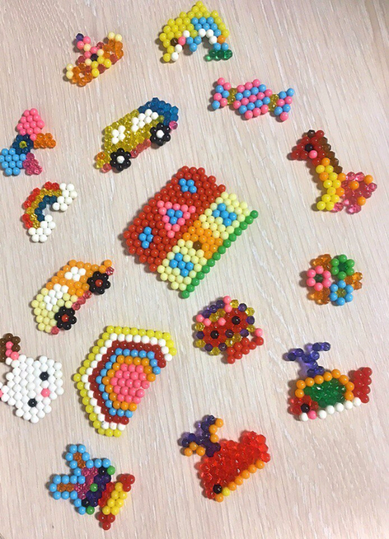 Мозаика. Но не простая. Выкладываешь на специальном поле фигурку по трафарету (или сам придумываешь), брызгаешь обычной водой (пульверизатор в комплекте), ждешь 20-30 минут и фигурка застывает ) Снимаешь ее и радуешься )