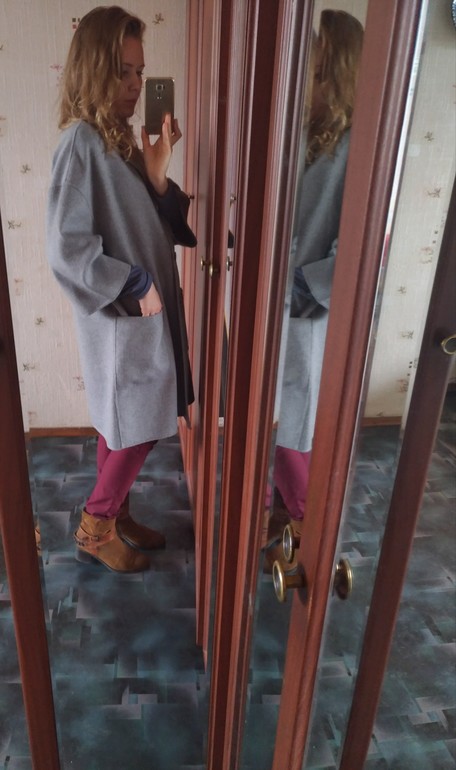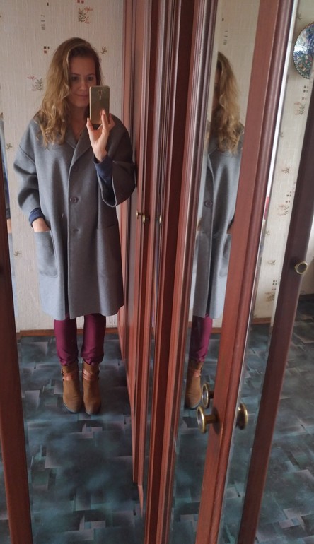 СПасибо. Может я все-таки криво встала) в зеркале вообще по-другому, давно поняла. Со стороны фото правдивее. Пальто на 50% кашемир, осень легкое, хочу, чтобы доставили 42 й размер, это 44й. Подожду, пока доставят в нашу мегу. Сьезжу и примерю