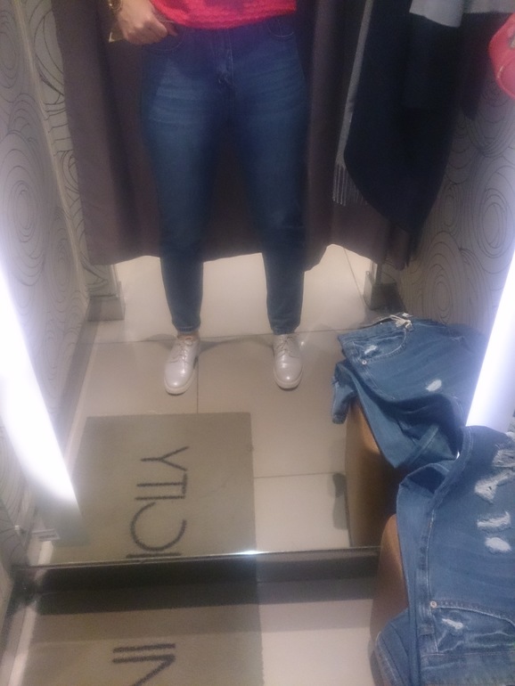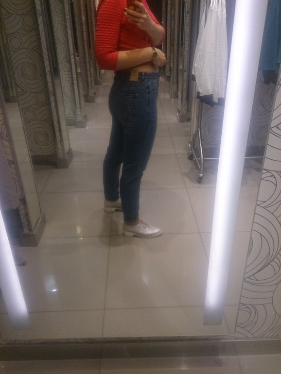 ПримерочнаяЗашла сегодня в инсити, примерила джинсы moom (вроде так?). Хорошо сели, но цена без скидок. Когда у них начинаются акции? Я опоздала там на какие-то бонусы. Взяла бы, но со скидкой)) освещение и фото на телефон 🙈🙈🙈 у колен не сборят, у меня гольфы и видимо джинсы за них цапанулись.