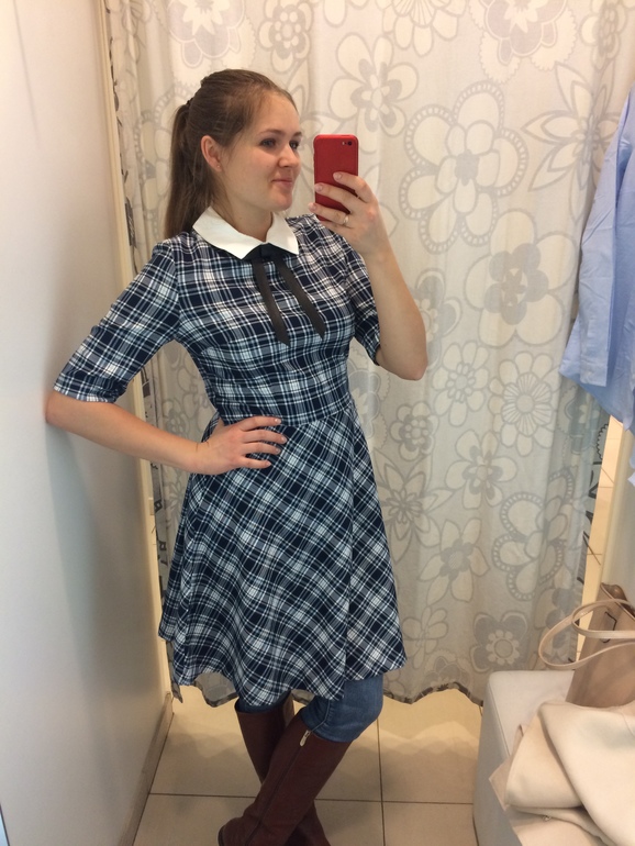 Платье из Золлы.состав не смотрела, но к телу приятное, может немного шерсти есть. Захотелось почувствовать себя школьницей))))