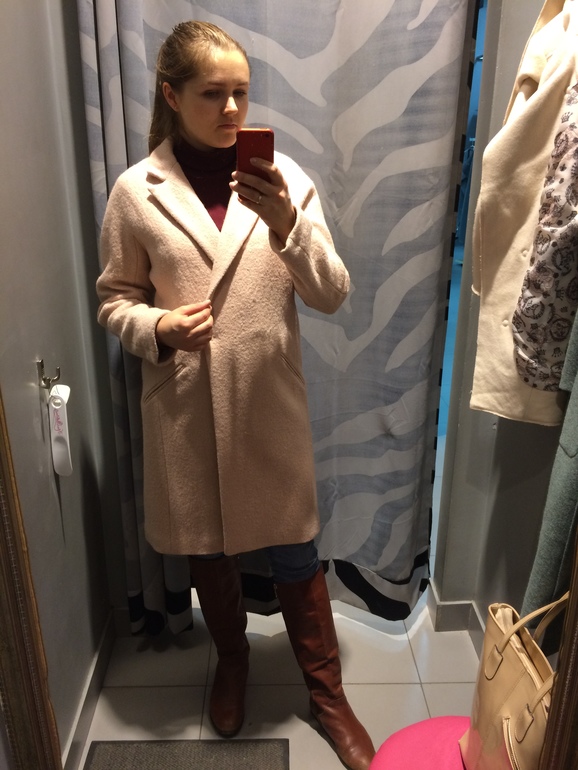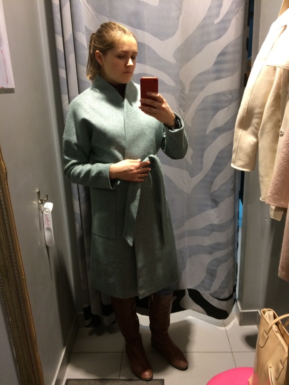 Ещё мерила пальто в Кира Пластинина. Свет там ужасный конечно. Влюбилась в серозеленое пальто!!!! Какое же оно нежное на ощупь! Но купить все же не решилась. Да и мерила не с той обувью.Пудровое тоже понравилось, но немного наверное я не понимаю пальто оверсайз я в нем прям тетя.
