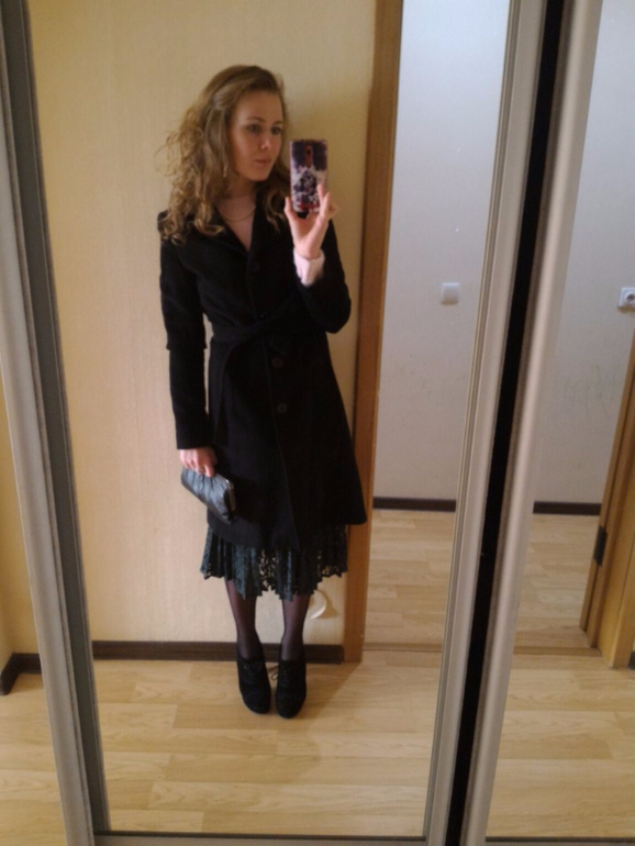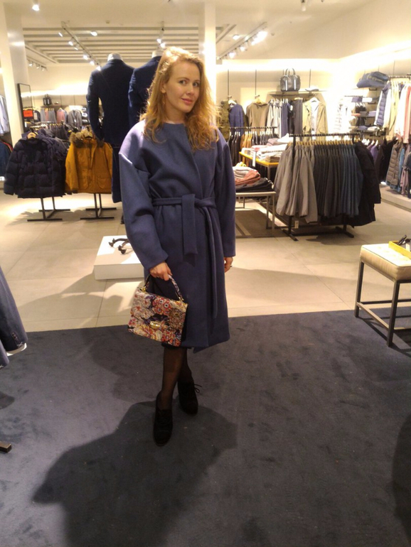 Свитерок симпатичный. Берет вам идет. Юбку уже обсуждали - мне она не нравится. Какая-то очень старомодная. У синего пальто прекрасный цвет, но фасон и размер явно не ваш. Ну и про леггинсы...у вас стройные ноги, но перебор с обтягом.