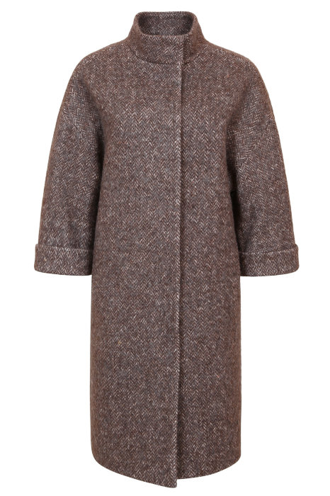 Вам вот такой фасон должен пойти. У меня подобное из Каляева. Тоже оверсайз, но смотрится аккуратно, и наоборот подчеркивает стройность