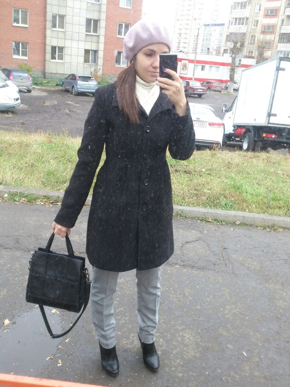 Наташа, с твоей яркой внешностью брюнетки нужны более дерзкие яркие пятна, но я бы акценты поставила на ярком шарфе и перчатках, брюки скорее всего надо на тёмные сменить, а сумка хорошая только твоя из всех остальных - но формы тоже сомнительные🤔