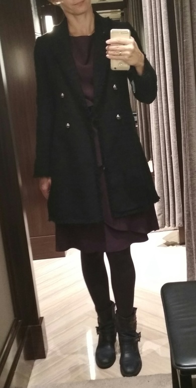 свнтленькое платишко лучше всего,1пальто с воротником- супер! только бы его или под брюки либо миди юбку