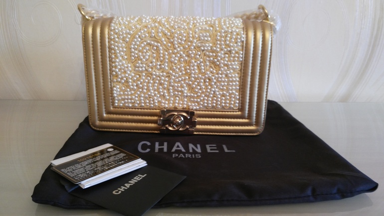 Если вам важен сам факт существования данной сумки у Шанель, чтобы не лохонуться...То, да, подобная модель была представлена на показе Лагерфельда "Chanel осень-зима 2014-2015" (только внимательно на нее посмотрите, особенно на жемчуг) К тому же в золоте, лично я никогда не видела.