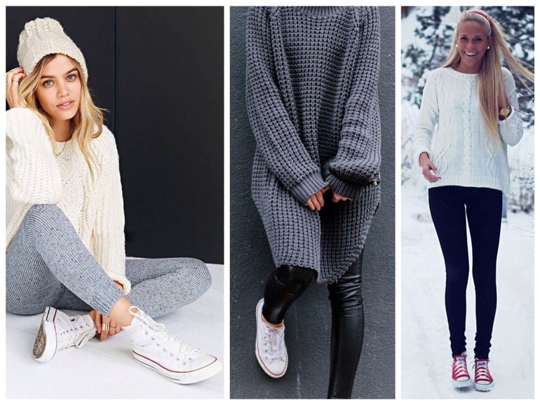 Колготки/леггинсы крупной вязки хорошо смотрятся только на длинных стройных ногах.