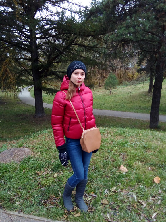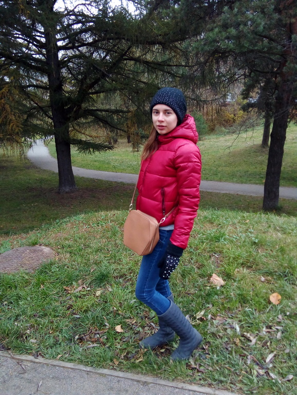 Шапку сменить без страз,если любишь сумки,то через плечо более спортивную или рюкзак