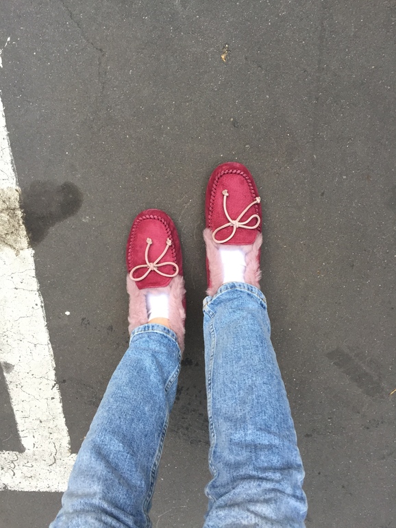 Это прям в день получения посылки решила опробовать угги. Ношу без носков) задники стоечкой) ношу как получила, практически, не снимая) оч теплооо, мягко)) к ним купила шапку в modis. На самом деое просто пошла подружке помогать выбирать шапку😂