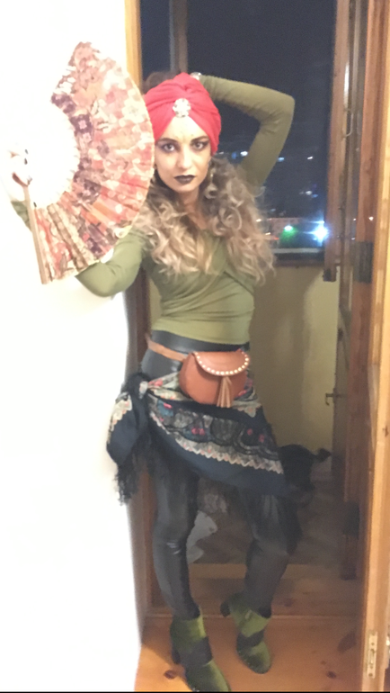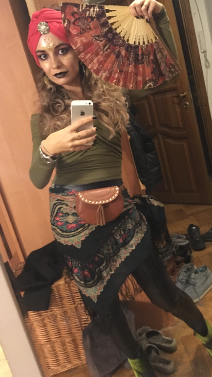 В этом году долго не могла поймать вдохновение...все было не то, да и совершенно не хотелось покупать что-то чисто для одной маскарадной ночи. И вот, вчера, меня осенило! Я прикинула, что есть у меня интересное в гардеробе и собрала следующий очень бюджетный образ. Для него вам понадобятся: