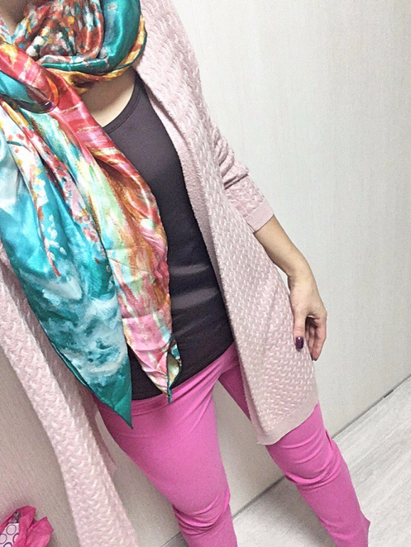 У меня периодически бзики на платки бывают, скупаю тоннами, потом раздаю, когда волна проходит). Но сейчас поняла, что для меня самые удобные чуть меньше Вашего, люблю просто сзади просто завязать, а спереди треугольник образуется. У меня вечно шея мерзнет, очень спасает и смотрится не громоздко) Сейчас в поиске шелкового голубого, но без результатно, видимо, не сезон - летом полно было.