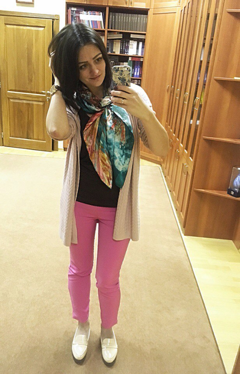 Я очень люблю так же повязывать треугольником под тренч )) Когда весна уже, тепло, и платочек и тренчик бежевый - ну прелесть же )))