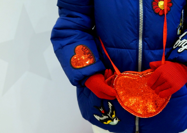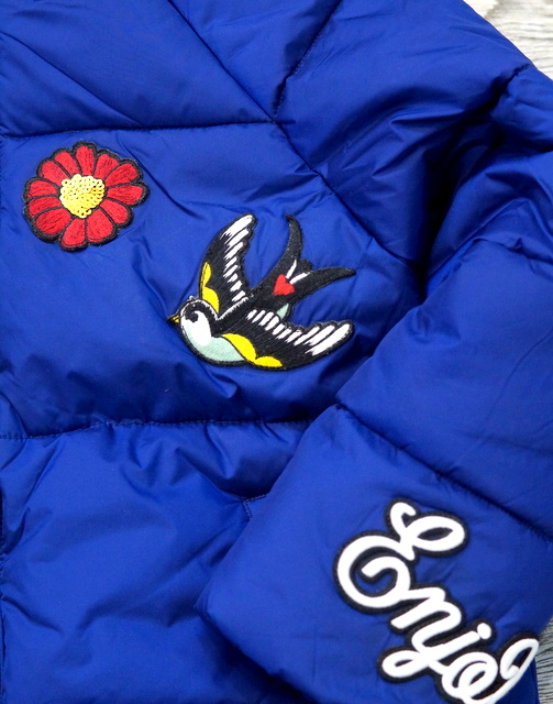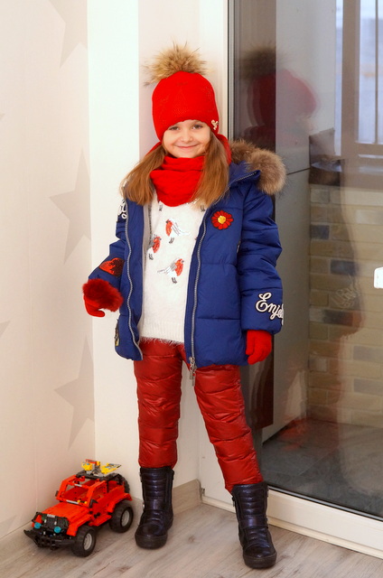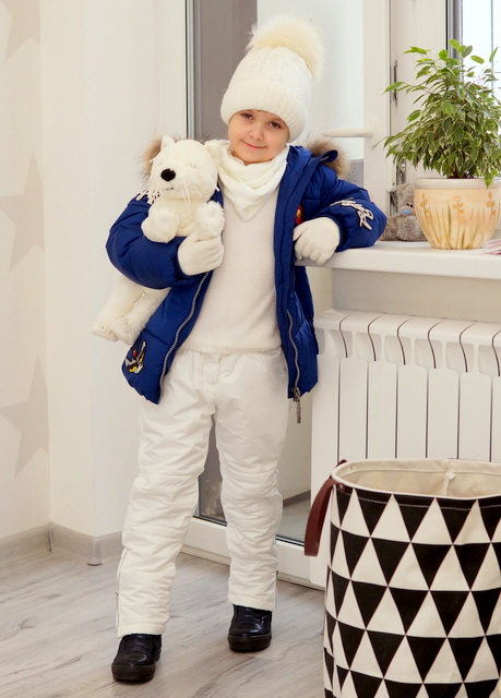 А я хотела белую! Там такая же есть белая куртка, с такими же яркими аппликациями, с ласточками и сердечком из сияющих пайеток. И белая!!! Я вообще обожаю белый цвет. И зимой какая-то вещь обязательно у меня и моих детей должна быть белой...
