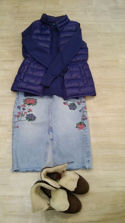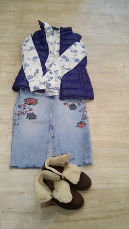 Рубашка и пуховый жилет Benetton, юбка Mango - тут мне кажется перебор цветочков)))
