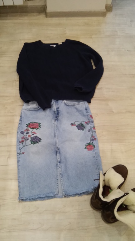 Свитерок Levis (на самом деле он темно синий), юбка Mango