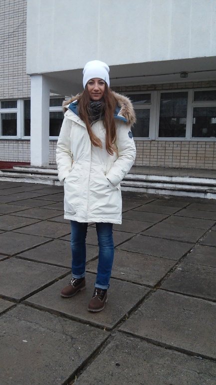 я еще в ней не фотографировалась(некому( Сейчас ношу с узкими джинсами и ботинками/сапогами спортивными