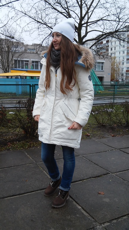 Парка Merrell, шапка Termit, джинсы Colins и ботинкиTimberland