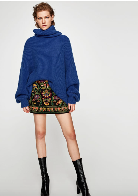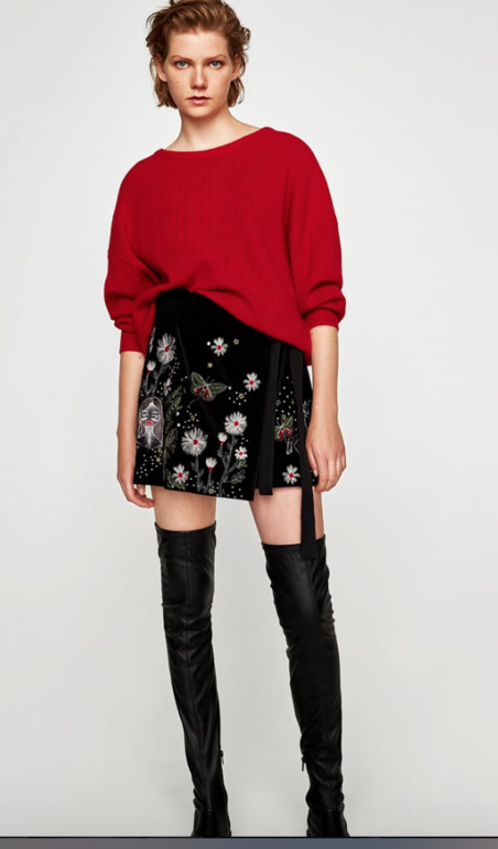 мне тоже юбка нравиться очень крутая , под неё яркий джемпер, если очень хотите создать яркий образ, а можно и просто тотал : черная водолазка и колгодки плотные . прям очень.