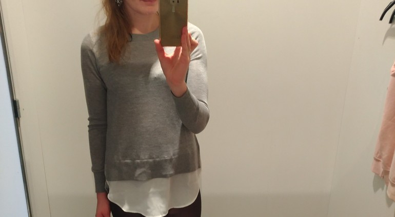 Серому джемперу, конечно, нет, очень дешево выглядит и наверняка в носке поведет себя отвратительно.