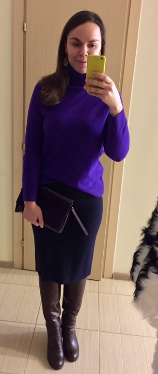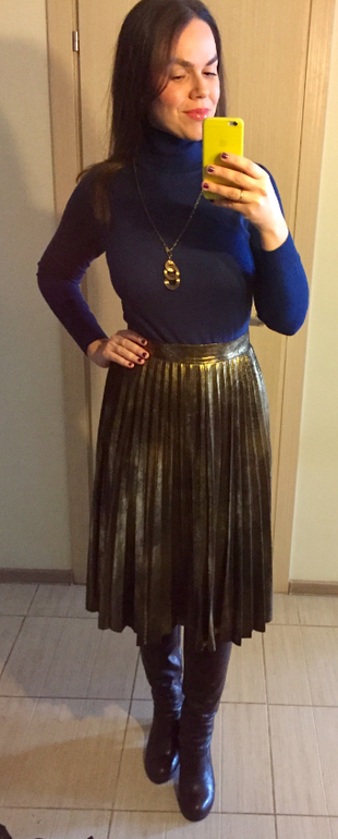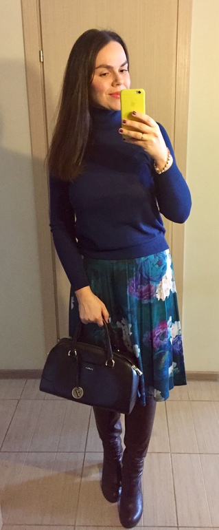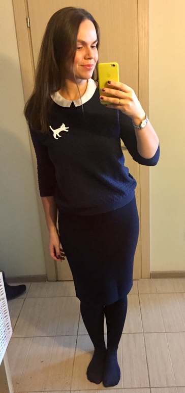 еще у меня новая темно синяя юбка-труба из Остин. она супер!