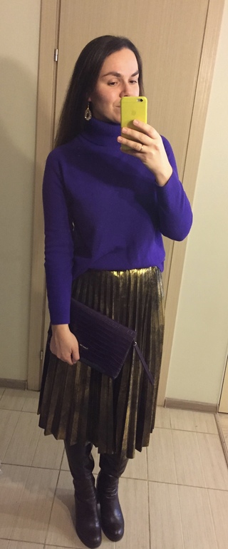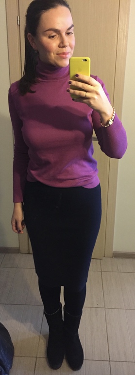 Все отлично! Красивые образы и Вам все очень идет! Я тоже в остине эту юбку прикупила, увидела, когда ходила смотреть Ваш бордовый костюм :) юбка мне больше понравилась :)
