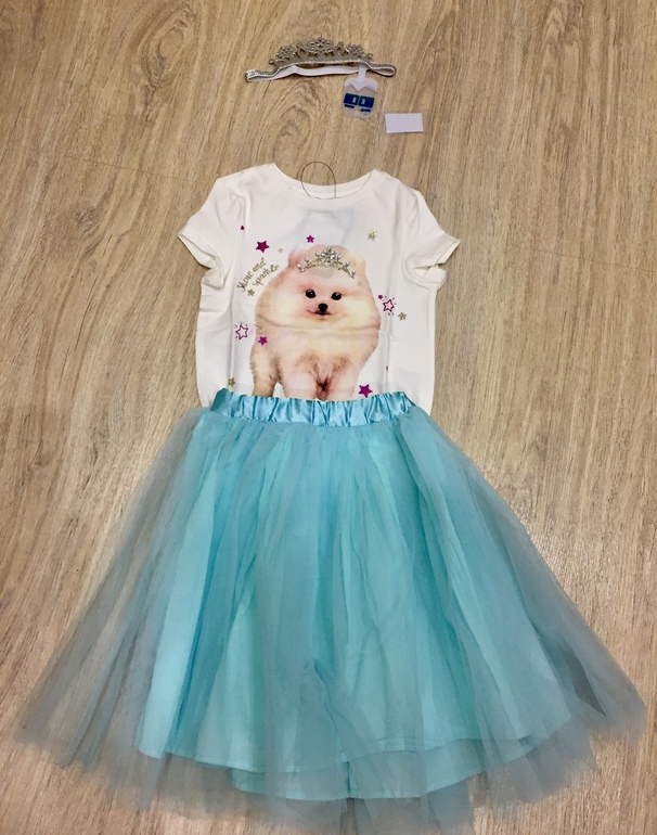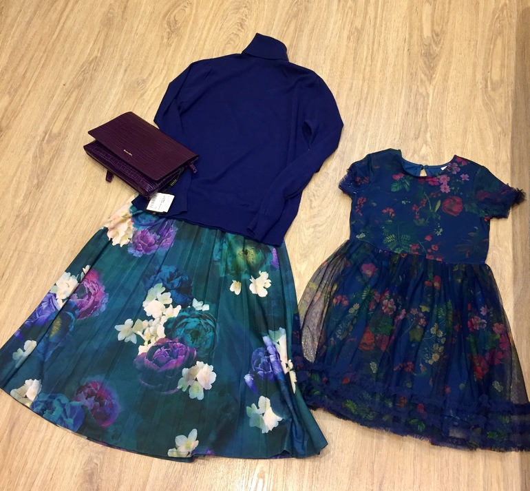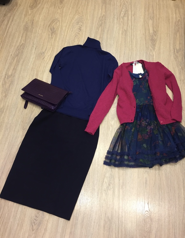 Синий свитерок с золотистой юбкой это просто очень круто! Мне больше всего этот образ понравился! Все вещи классные, качественные, стильные, все с удовольствием рассматривала! И доченьке столько обновок перепало! Куда она их выгуливать будет?