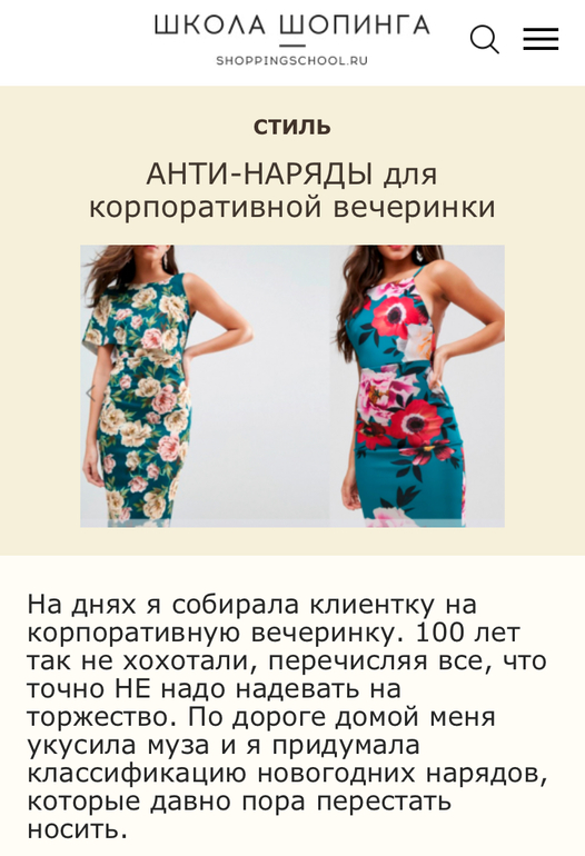 Модные статьиДля тех, кто собирается на корпоративы, вот здесь статья стилиста о том, как туда одеваться не стоит. Может кому будет интересно.