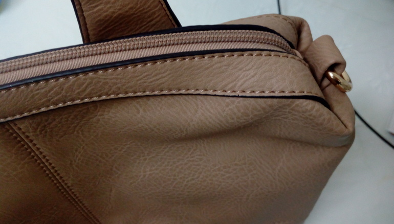 Фамилия (Familia)Вообщем нужна была сумка под дубленку, светло-коричневую, и случайно встретила ее)), очень понравился дизайн, размер, цвет и все как надо, и под дубленку пою подходит. Вообщем взяла! (Забыла сказать сумка рюкзак, ну трансформер какие сейчас популярные). Но! Придя домой только до меня дошло! Материал у нее, ну дермантин-дермантином! И очень дешевит!!((( Стоит 2500, цена в принципе нормальная, но что то я в сомнениях(((((. Что скажете? Оставить или что то другое поискать?)) Фото прилагаю)))