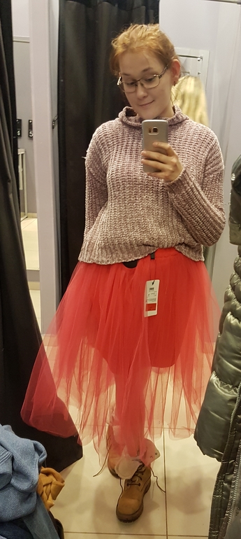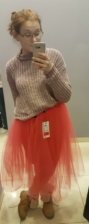 Ничего не имею против юбок из фатина( хотя мне, кажется пик их популярности прошёл, я в 2016 последний раз использовала на фотосессии, с дочкой шили одинаковые), но именно эта Юбка крайне неудачная, прозрачная , длина странная и смотрится очень дёшево, не украшает. У Вас в предыдущем посте насыщенная красная красивая. Остальные вещи дело вкуса.