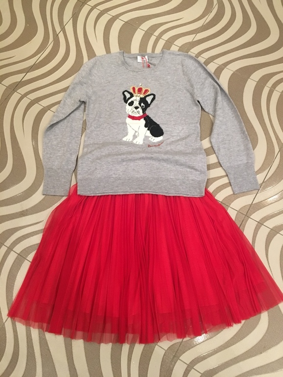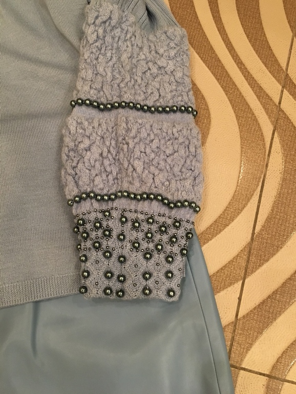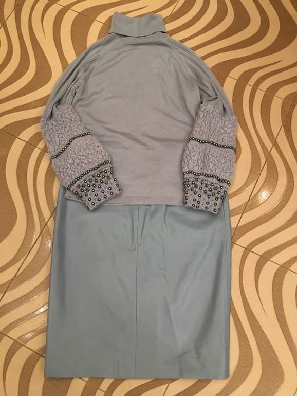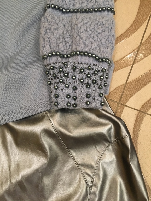 Опять же сначала приобрела свитер, а потом к нему искала юбку, нашла две, одна четко под бусины подходит, а вторая лучше в общей картинке и по модели