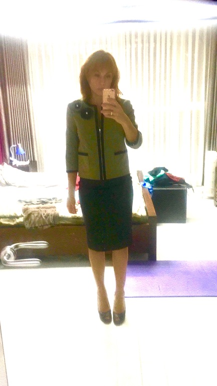Пиджак сам по себе хорош. И юбка сама по себе хороша. Но вместе они из Вас делают учительницу 1 сентября на линейке. Если Вы и правда учительница, тогда самое то! Но попробуйте их все таки разделить. Пиджак с джинсами рваными или с подворотом, чтобы он один был из классики, а останое все кэжуал. Сразу образ будет намного интереснее и ярче!
