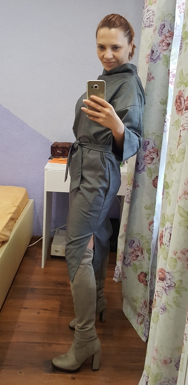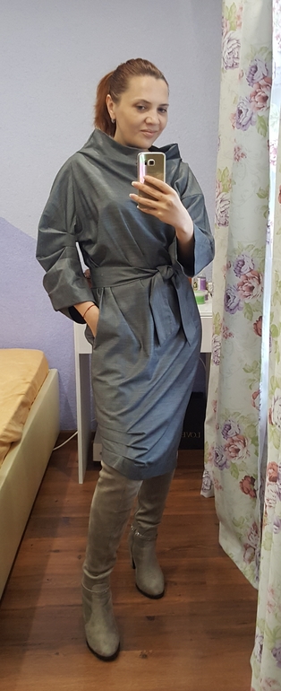 На самом деле в реале подходят :)) просто фото в зеркале и отражение света у платья которого нет у сапог немного меняют цвет. А так они оба в серой похожей тональности. Ботильоны на тракторной подошве есть :))) попробую. Но боюсь что со своим худыми щиколотками буду как в копытах :)) я их с брюками ношу в основном.