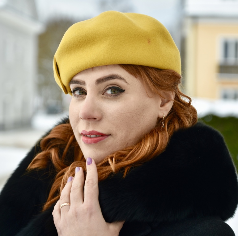 Горчичный совершенно не мой цвет! Но мне захотелось ее купить! Тем более на финальных скидках эта шляпка была всего 13 евро 😊 И у меня к ней такой цветочек нашелся