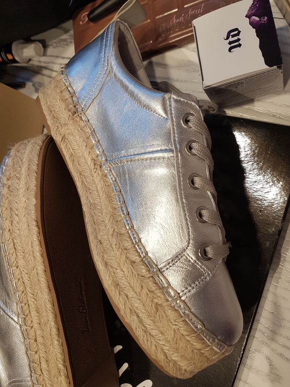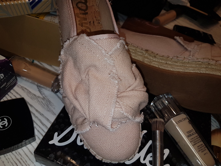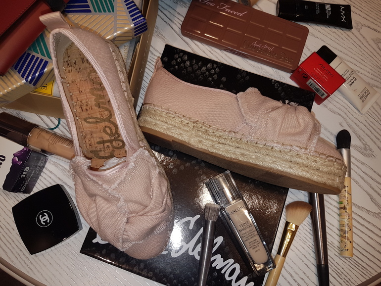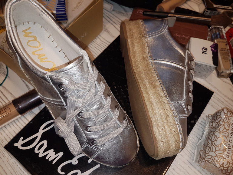 Решила чуток поделиться покупками )))) так уж всегда случается, что после зимы сразу переобуваешься чуть ли не в сандалии ))) ну конечно не в сандалии, но в кроссовки легкие точно. Тут в отпуску соображаю, что легкой обуви не осталось от слова совсем. Кроссовки все уже на выброс, ибо убила. Новые кроссовки снова, кроме как в спортзал, покупать пока не охото. И тут я вспомнила, что в прошлом году купила офигительные эспадрильи ))) многие наверное помнят мои коричневые с помпошками. Но так уж случилось, что от радостной встречи со мной собака родителей их попробовала на вкус.....а может то была не радость от встречи, а кожаный запах врага. Ну тут уже дело темное. Поэтому изобретать велосипед я не стала и решила посмотреть обувку той же фирмы, потому как ноге было ооочень комфортно. Ну и пришел-увидел-купил ))) Фирма Sam Edelman