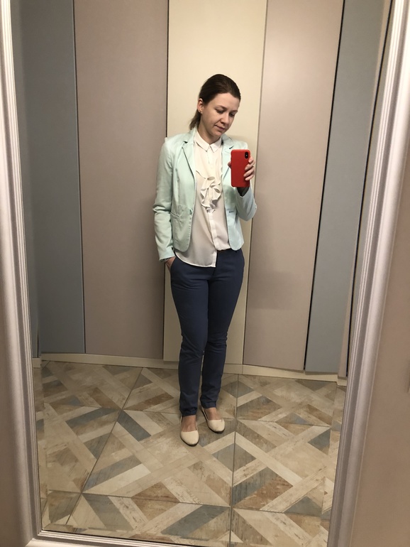 И еще теплее. Меняю юбку на брючки. И в дождливую погоду образ.