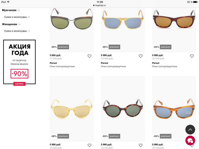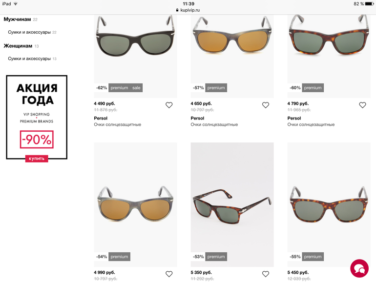 АксессуарыВсем здравствуйте! Вдруг, кому надо. Отличный бренд солнечных очков на Купивип очень дёшево. Линзы - только стекло, это на века)) Отличный фильтр. Там ещё купоны поприсылали на скидку 30%, они работают. На Юксе все это от 15 тыр.