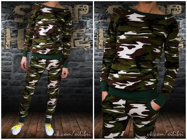 А я люблю камуфляж,но полностью костюм бы не одела...у меня так одна футболка имеется